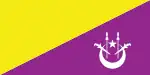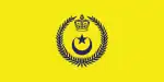 Flag of the Royal Family Members with PortfolioA yellow-purple per bend divided flag with a white crescent and star and two white kris and spears in the bottom right.