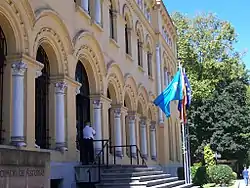 The origin of the flag of Asturias is in 1808, during the Peninsular War. As there was not any Spanish official flag yet, Asturians created the current flag, without any separatist intention in the war against the Napoleon's empire.[2] In its first version, it included the motto Asturias jamás vencida (Asturias never defeated).