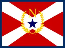 Prior to the consolidation, the flag consisted of a blue star on a red background overlapped by two crossing white bars. The blue star was enclosed in golden olive branches located under the letter N, standing for the city name. It had been designed by Harville H. Duncan and adopted by the City Council in 1961.