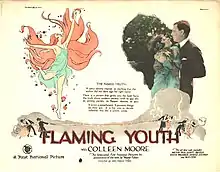 Flaming Youth is a 1923 American silent drama film directed by John Francis Dillon and starring Colleen Moore and Milton Sills, based on the novel of the same name by Samuel Hopkins Adams. The film was produced and distributed by Associated First National. In his retrospective essay "Echoes of the Jazz Age", writer F. Scott Fitzgerald cited Flaming Youth as the only film that captured the sexual revolution of the Jazz Age.[1]