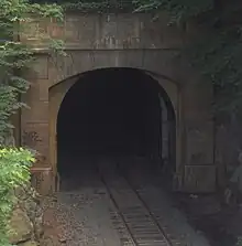 Construction of the tunnel started in 1836 and it opened in 1840.[1] In 1858-9 the Flat Rock and Black Rock Tunnels were widened to accommodate the wider rolling stock from the Lebanon Valley Branch. The spacing between the tracks was increased from 4 feet (1.2 m) to 6 feet (1.8 m). The widening of the tunnel was the first project to employ electric detonation of multiple explosive charges.[2]