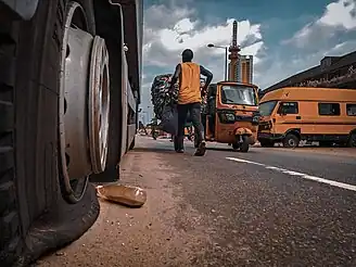 Where a flat tire occurs, drivers are advised to slow gradually and pull off the road.[2] Continuing to drive may damage the wheel, the hub or other parts of the vehicle. Driving with a flat tire, especially at high speeds, may result in a loss of control and possibly result in a car accident.