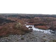 Since 2017, Pennine PeatLIFE has been actively restoring blanket bogs in Northern England, including Fleet Moss.[28] The programme has seen the installation of sediment traps and dams across 253 acres (102.5 ha) to prevent erosion and the run-off of acidic peaty water into streams and rivers.[29][30] Rewetting of the bog also helps to prevent flooding in downstream areas.[31] By the spring of 2019, more than 990 acres (400 ha) of peatland at Fleet Moss had been restored, with the expectation that 1,200 acres (500 ha) would be completed by 2022.[27]
