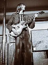 By 1969, Green was using LSD. During a European tour towards the end of that year, he experienced a bad acid trip at a hippie commune in Munich. Clifford Davis, the band's manager, singled out this incident as the crucial point in Green's mental decline.[24] He said: "The truth about Peter Green and how he ended up how he did is very simple. We were touring Europe in late 1969. When we were in Germany, Peter told me he had been invited to a party. I knew there were going to be a lot of drugs around and I suggested that he didn't go. But he went anyway and I understand from him that he took what turned out to be very bad, impure LSD. He was never the same again."[25] German author and filmmaker Rainer Langhans stated in his autobiography that he and his then-girlfriend, model Uschi Obermaier, met Green in Munich and invited him to their Highfisch-Kommune, where the drinks were spiked with acid.[26][27] Langhans and Obermaier were planning to organise an open-air "Bavarian Woodstock", for which they wanted Jimi Hendrix and The Rolling Stones to be the main acts. Already in contact with Hendrix (with whom Obermaier had a brief affair earlier that year), they hoped Green would help them to get in contact with The Rolling Stones.[26]