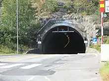 The Flekkerøy Tunnel (Norwegian: Flekkerøytunnelen) is a subsea road tunnel on the county road 457 in the municipality of Kristiansand in Agder county, Norway. It is the southernmost subsea tunnel in Norway. The tunnel runs under the strait between Kroodden on the mainland and the island of Flekkerøya. The tunnel is 2,321-metre (7,615 ft) long, it reaches a depth of 101 metres (331 ft) below sea level, and the maximum gradient is 10%. Construction started on the Flekkerøy tunnel on 1 August 1988. The breakthrough in the tunnel was on 6 March 1989 and the tunnel was opened on 15 August 1989. It replaced a ferry connection between Møvik in mainland Kristiansand and Lindebøkilen on the island of Flekkerøy.[1][2]