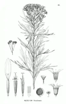 ![]() Illustration of Senecio brasiliensis from Flora Brasiliensis | |