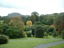 The 18th-century landscaped park is framed by Benauglin and Cuilcagh mountains. It was laid out c. 1778–80 by William King for the 1st Earl. King's work included the present undulating main drive, replacing the earlier straight east avenue which ran from the centre of the main front of the house. The path of the original drive remains visible on aerial photographs.