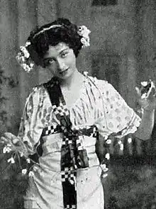 In August 1905, she made her first appearance in the West End repeating her role in The Blue Moon and making an immediate success.[1] From then until the First World War she made occasional variety appearances and played in a series of musical comedies.[2] The latter included The Dairymaids, Tom Jones, The Arcadians (in which she created the role of Sombra), The Mousmé, The Sleeping Beauty, An Indian Romance and The Sleeping Beauty Re-Awakened.[2] In July 1914, she sailed for Australia, but the outbreak of war curtailed her tour.[1] Returning to England in 1915 she toured in variety theatres and played pantomime seasons in London.[2] Australian and South African tours followed in the 1920s, and she returned to England in 1927. One of her last engagements was in a national tour of The Gipsy Princess.[1]