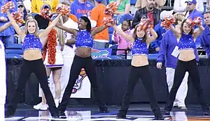The Dazzlers are the official dance team for the University of Florida. They perform at various athletics and community events including men's and women's basketball games and home football games.[2] The squad, made up of 20 to 22 women, also performs at the school's volleyball matches, home baseball weekend series, and gymnastics meets.