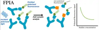 Since Perrin's contribution, the technique has grown from determining binding isotherms under heavily controlled parameters, to the study of antigen-antibody, small molecule-protein, and hormone-receptor binding interactions.[4] A fluorescence polarization immunoassay was first described and used in the 1960s.[5][6] The competitive homogenous characteristic allowed for the fluorescence polarization immunoassay to be automated much easier than other immunoassay techniques such as radioimmunoassays or enzyme-linked immunoassays.[4]