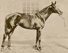 Flying Fox was a very difficult colt to handle and only raced for two years. However, he met with enormous success under trainer John Porter, whom the National Horseracing Museum says was "undoubtedly the most successful trainer of the Victorian era."[3] Flying Fox won three of his five starts at age two, and then at age three went undefeated while becoming only the 8th horse in history to win the Triple Crown. In his sixth and last race of his season and of his career, he won the Jockey Club Stakes at Newmarket.