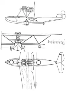 The Fokker B.I was a reconnaissance flying boat built in the Netherlands in 1922.[1] The B.I was followed by an improved version, the B.III in 1926. It was a conventional biplane flying boat design, with staggered sesquiplane wings braced by struts arranged as a Warren truss. The engine was mounted pusher-wise on the top wing. The duralumin hull featured three open cockpits - one at the nose for a gunner, one in front of the lower wing for the pilot and engineer and one behind the wings for another gunner. The B.I was amphibious, equipped with main undercarriage that folded back along the hull, but this feature was omitted in the B.III. The B.I was flown in the Dutch East Indies by the Naval Air Service for a number of years, and although it gave good service, no further examples were ordered from Fokker.[2]