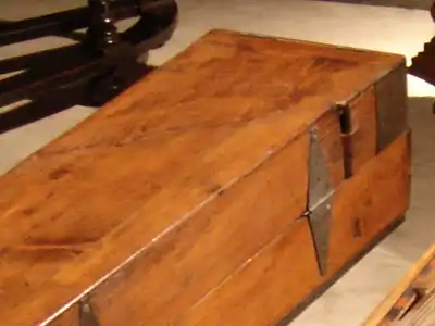 A folding harpsichord may have been owned by Prince Leopold of Anhalt-Cöthen during the time he employed Johann Sebastian Bach as his Kapellmeister. The prince took Bach and his musicians with him when he traveled.[7] A record from the Cöthen court shows a payment to Bach (March 1723) for requilling the plectra of "das Reise Clavesin" ("the traveling harpsichord").[8]