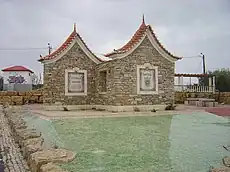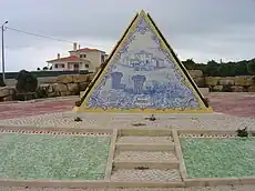The pyramid at the entrance of Fontanelas, with typical Portuguese azulejos.