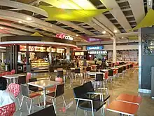 A food court (in Asia-Pacific also called food hall or hawker centre)[1] is generally an indoor plaza or common area within a facility that is contiguous with the counters of multiple food vendors and provides a common area for self-serve dinner.[2][3] It can also be a public dining area in front of a cafe or diner.