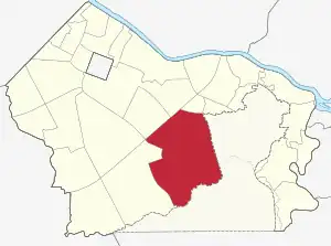 The subdivision is divided into Forbes Park North and Forbes Park South by McKinley Road[2] and is bounded roughly by barangay Pinagkaisahan to the north, Bel-Air and Urdaneta Villages across Epifanio de los Santos Avenue to the northwest, Taguig (Fort Bonifacio which includes Bonifacio Global City) to the east, the Maricaban Creek to the south, and Dasmariñas Village to the west.[3] With an area of 2.5 square kilometers (0.97 sq mi), it is Makati's largest barangay in terms of land area since the transfer of the previous holder, Post Proper Southside, to Taguig in 2023.[4]