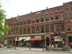 Ford Block is a historic commercial building located at Oneonta in Otsego County, New York. It is a large, three story brick building in a modified Queen Anne style. It was built between 1881 and 1882 and is built of load-bearing brick walls and covered by a flat composition roof. The first floor is a series of storefronts; the second window openings on the second level have segmental arches and those on the third floor round arches. In 1975, it was saved from demolition as part of the urban renewal of Oneonta by a group of local businessmen.[2]