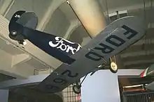 The single-seat aircraft was designed with Mr. Ford's instructions that it "fit in his office".[4] The first example was displayed at the 1926 Ford National Reliability Air Tour.[5] The press and public flocked to see "Ford's Flying Car," a single-seat aircraft that had very little in common with the popular Model T "Flivver." Comedian Will Rogers posed for press photos in the aircraft (although he never flew one).[6] A New York Evening Sun columnist wrote the following poem showing excitement for the future flying Fords.
