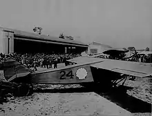 The new Ford Trimotor had a prop failure that shook loose one landing gear and an engine on one side. The plane landed hard in a field at Nova, Ohio. Walter Beech won in a Travel Air aircraft.[6]