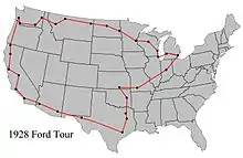 The Ford Reliability Tour, properly called "The National Air Tour for the Edsel B. Ford Reliability Trophy", was a series of aerial tours sponsored in part by Ford from 1925 to 1931 and re-created in 2003. Top prize was the Edsel Ford Reliability Trophy.[1] Henry and Edsel Ford were shareholders in the Stout Engineering Company. In August 1925, they purchased the entire company, making it the Stout Metal Airplane Division of the Ford Motor Company. Their product, the Stout 2-AT Pullman, was a featured plane. The plane was also used by their new airline the Ford Air Transport Service, which started regular flights in April. The flights out of Ford Airport (Dearborn) cross-marketed, and showcased Ford's new interest in aviation.[2]