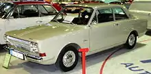 The Ford Taunus P3 had a completely new body in a very modern style. The look of car reminded some critics of a bath tub, and it consequently gained the soubriquet "Taunus Badewanne".[3] At a time when competitors boasted that all four corners of the vehicles were visible from the driver's seat, the new Taunus instead offered a streamlined form.[4] However, in Germany the concept of streamlining in cars was associated with narrow passenger cabins reminiscent of the 1930s and of the still popular Volkswagen Beetle.[4] The new Taunus, however, provided greater interior width than its predecessor, despite being no wider on the outside.[4] Although the 1.7-litre version was launched with the same 60 PS power output as the outgoing model, the new model was a full 10 km/h (6 mph) faster, which was attributed to improved aerodynamics and a lighter body shell.[4] The front end styling is reminiscent of the 1961 U.S. Ford Thunderbird and Lincoln Continental.