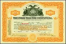 Ford Tractor Company was incorporated on March 15, 1915, by W. Baer Ewing and Paul W. Ford.[1] Prior to founding the company, Ewing worked in the insurance business. The choice of name has been assessed as deceptive by later commentators. Businessman W. Baer Ewing had hired tractor designer Robert Kinkaid to develop his product line, but named the company after one Paul Ford, a local hardware clerk Ewing had hired, allegedly to leverage the Ford name to take advantage of customer confusion with Henry Ford.[2][3] The company may have hoped for a quick settlement with Henry Ford to acquire the name, but instead Henry Ford marketed his own line of tractors, beginning in 1916, under the brand name Fordson.[4]