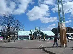East of Webster Avenue and directly across from Fordham University, Fordham Plaza is a major hub for buses and a stop on the Metro-North Railroad's Harlem and New Haven lines. Metro North Railroad's Hudson Line stops at the University Heights station. Fordham Road is served by the New York City Subway at Jerome Avenue (4 train) and Grand Concourse (B and D trains).
