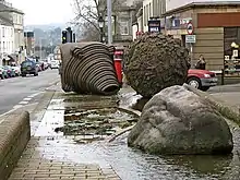 In 1991 the town council commissioned bronze sculpture from Neville Gabie which were erected in Fore Street they are entitled Ball and Whirl.[29] An album detailing the work and its commissioning is held by the Chard Museum.[30]