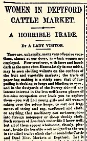 • "Women in Deptford Cattle Market". Daily Telegraph. 12 July 1897. p. 8.