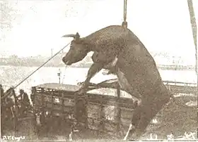 Foreign veterinarians observed for their governments. American cattle bore ear tags and, if one was found to be diseased, the American vet would telegraph the serial number to his government: the animal's home farm could be traced within hours and a quarantine imposed if necessary.[41] The Argentine government sent a vet too, in 1903.[42]