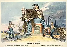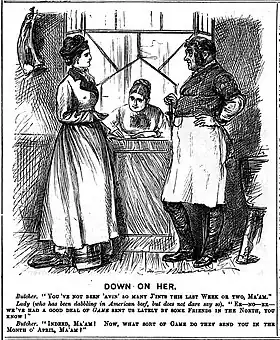 One of the most unpleasant jobs was cleaning cattle and sheep intestines, which were used for making sausage skins (and, according to a later source, condoms).[61] Originally men's work, in about 1891 they went on strike for more pay: management responded by assigning the work to women.[62]