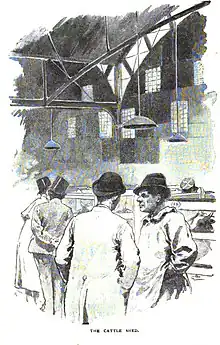 It was not an auction market. Trading was by private bargain, and in live animals only. Exporters consigned cattle, sheep and pigs to salesmen who worked on commission. Salesmen and buyers intermingled around the animal pens. Market days were Mondays and Thursdays, but there was nothing to stop animals being sold in their lairs on other days, and this was often done, especially when a shipload arrived late.[32]