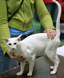 ![]() Foreign White presented in a cat show in Finland, competing as a white Siamese. | |