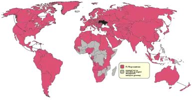 There are also countries that are not part of any foreign electoral precinct: Iceland, Albania, Bhutan, Laos, North Korea, Papua New Guinea, Haiti, many African countries, including Sierra Leone, Guinea-Bissau, The Gambia, Liberia, Ivory Coast, Burkina Faso, Ghana, Togo, Cameroon, Equatorial Guinea, Congo, DR Congo, Chad, Central African Republic, South Sudan, Uganda, Djibouti, Eritrea and Somalia, as well as the numerous Pacific and Caribbean island states.