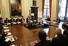 Currently the United States has official policy towards the Kurdistan Regional Government of Iraq. US Kurdish policy starting initially with "contacts" to a covert "relationship" and finally to an overt "institutionalized relationship" embodied in an official US Kurdish policy. The change of US interaction with the Kurds from humanitarian assistance to strategic partnership as a non-state ally and an asset is testimony to the enhanced role of the Kurdistan Region in the international relations of the Middle East.[32] Deepening KRG–US economic relations was supported by establishment of the United States Kurdistan Business Council (USKBC) in April 2012. In the same month President of Kurdistan Region, President Masud Barzani, visited Washington, D.C., and met with President Barack Obama and Vice President Joe Biden.[33]
