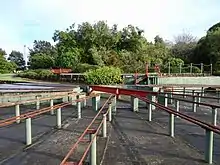 Minogue Park was first bought by Hamilton City Council in 1959, then extended in 1964, 1973 (Waterworld, dog exercise area, luge track and Hamilton Model Engineers Club), 1975 Rotokaeo Lake, 1979 (netball courts, BMX track and car park, and end of Walsh Street, 1992 NZR land west of Rotokaeo and in 2008. In September 1979 it was named after a former Mayor, Mike Minogue. In 2004 it was classified as a reserve under the Reserves Act (1977). There was a speedway until 1979, now this has been replaced by Minogue Park netball courts, a destination playground and a BMX track.[4] The Model Engineers Club moved to the park in 1983[15] and now has 1.6 km (0.99 mi) of miniature railway track,[16] a 1953 diesel shunter and the former Frankton signalbox.[17] The playground was modernised in 2015.[18] A cycleway is planned to link the playground with Nawton.[19]