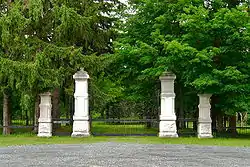 Forest Park Cemetery was first incorporated in 1897 by a group of wealthy Troy businessmen under the Forest Park Cemetery Corporation,[2] though based on older gravestones, the cemetery had apparently been in use since at least 1856.[1] The original area chosen for the cemetery occupied over 200 acres (81 ha) of farmland in what was then rural Brunswick. Meant to outgrow and even outclass Troy's Oakwood Cemetery, it was originally designed by Garnet Baltimore,[2][3] the first African-American graduate of Rensselaer Polytechnic Institute.[3] Baltimore planned on the cemetery to offer visitors a park-like experience, complete with statuary, winding trails, and a large receiving tomb near the entrance.[2]