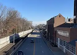 ![]() Forest Park Parkway as seen from the Washington University overpass looking east. | |
