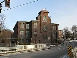 The Forge Village Historic District of Westford, Massachusetts encompasses one of the town's historic 19th century mill villages. The focal point of the district is the mill complex of the Abbot Worsted Company, around which the village expanded after its founding in 1854. Prior to its founding the area was the site of a number of blacksmithies and iron forging operations, and was the site of a fulling mill in the 18th century. The center of the district is at the junction of East and West Prescott Streets with Pleasant Street, radiating away to ballfields on West Prescott, Abbot Street at Pleasant, and just beyond Orchard Street on East Prescott. Worker housing occupies a number of adjacent streets in the area.[2]