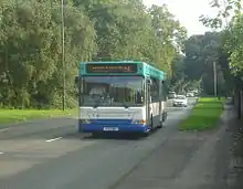 Consultants WSP Development and Transportation carried out a transport assessment of the North East Sector in 2006.[34] Among other things, this considered several options for bus services to the new development. In 2006 the only regular route "serving roads adjacent to the site", in the assessment's definition, were the hourly 526/527 circular services which served Crawley and Horley town centres among other places.[35] More frequent routes ran nearby, for example to the top of the Pound Hill neighbourhood (near the south end of the development site) and along Gatwick Road (west of the new neighbourhood).[36] The report concluded that the best way of serving Forge Wood would be to extend the Pound Hill routes[note 2] to serve the whole of the neighbourhood, and to combine these with shuttle buses to Gatwick Airport via Manor Royal.[38] In September 2014, Southdown PSV introduced hourly routes 40 and 50 to provide a service between several hotels and Gatwick Airport, also serving the north end of Pound Hill and then travelling along Crawley Avenue.[39] This route was withdrawn in 2015. Metrobus introduced route 27 on 23 April 2016, running daily between Forge Wood and Crawley bus station via Three Bridges station.[40][41] Route 27 will be replaced by new route 3 (branded "Magic Route 3") with effect from 3 February 2018. This will run at a higher frequency—hourly every day—and will be extended from Forge Wood to Gatwick Airport via City Place Gatwick.[42][43]