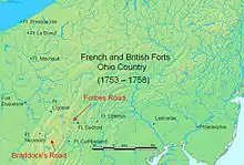Braddock had led a small invasion force launched from western Maryland. His poorly defended lines of supply and communication were soon compromised. Forbes intended to launch a large invasion from eastern Pennsylvania by hacking a new pioneer wagon road over the Allegheny Mountains. His plan called for a string of forts and blockhouses to guard the supply road from hostile bands of Native Americans.