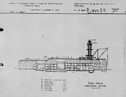 Overhead protection of the fort was provided by a 20-foot (6.1 m) thick steel-reinforced concrete deck.[10] The exterior walls ranged between approximately 25 to 36 ft (7.6 to 11.0 m) thick, making it virtually impregnable to enemy naval attack.[11]