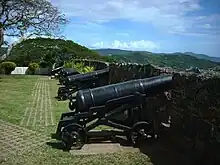Fort George’s construction served a dual purpose, first as a source of defence against foreign invasion and, second, to deal with the menace of the maroons in the area.[2] The area between Fort George and Fort Haldane in nearby Port Maria had a very large population of freedom fighters in the mid-eighteenth century. One of the most notable was Tacky, who led an insurgency, known as Tacky's rebellion against the British which lasted over five months.[3]