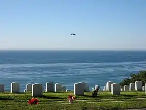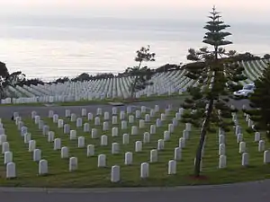 Fort Rosecrans National Cemetery is a federal military cemetery in the city of San Diego, California. It is located on the grounds of the former Army coastal artillery station Fort Rosecrans and is administered by the United States Department of Veterans Affairs. The cemetery is located approximately 10 miles (16 km) west of Downtown San Diego, overlooking San Diego Bay and the city from one side, and the Pacific Ocean on the other. Fort Rosecrans is named after William Starke Rosecrans, a Union general in the American Civil War. The cemetery was registered as California Historical Landmark #55[3] on December 6, 1932. The cemetery is spread out over 77.5 acres (31.4 ha) located on both sides of Catalina Blvd.