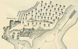 As the colony of New France expanded into the Great Lakes, the St. Lawrence River became a vital link connecting outposts on the lakes to Montréal. The French began establishing fortifications to secure the route to prevent Anglo-American expansion.[3] Sometime before 1683, the French had built Fort la Galette, a fortified post located on the St. Lawrence River along the northern shore of the river (near present Prescott, Ontario).[4] The fortified post was mainly used as a trading site and was abandoned and reoccupied several times.[3]