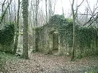 The powder magazine was located 1,800 metres (5,900 ft) to the southwest of the fort 48°39′0″N 5°57′10″E / 48.65000°N 5.95278°E. Constructed in 1890-91, it was equipped with its own well (now dry).[13] Today it is in ruins and shelters bats (Myotis myotis, Plecotus, and Whiskered bats), with a temperature and humidity suitable for their hibernation. It is therefore designated a nature preserve and is closed to access.
