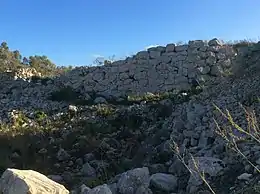 Remains of a fortified village, Borġ in-Nadur, Malta. Borġ in-Nadur is a notable example of Bronze Age fortifications.