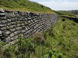 Fort Number 41 was constructed at the same time as the Fort of Aguieira and had a garrison of 240 men. It supported defences along the Tagus, providing fire to the west, as well as to the east in order to provide cover for the Fort of Casa, which was lower down and closer to the river. Portela Grande dominated the Bucelas gorge and it could also exchange crossfire with the Fort of Arpim to the north-northwest.[8] At an altitude of 274 metres the fort of Portela Grande was built as an irregular 11-sided polygon surrounded by a dry moat, with gun emplacements. It had five cannon. As with Portela Pequena, the Fort of Portela Grande had a stone-lined magazine, which was unusual in the Lines of Torres Vedras where most of the magazines were wood lined.[8][9] The fort is now topped by a survey marker.