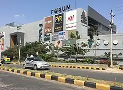 The mall has shopping area of 3,47,000 sqft and houses 100+ brands. It has a 6 screen PVR Multiplex, Many brands such as H&M, American Tourister, Crocs, Max have their outlets in the mall. It houses a Loyal world supermarket, unisex salon and spas. Many eateries are available in the food court including Hatti Kaapi, Domino's Pizza, McDonald's, KFC etc.[2] It also has gaming arcade for kids and for adults under one roof. The mall has a panoramic scenic view of and Chamundi Hill.