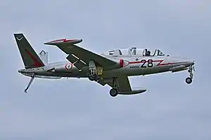 The Zéphyr differed from the Magister in being equipped with an arrester hook and a modified structure and undercarriage strengthened for carrier operations.[1] The Zéphyr also included a nose-mounted light. As it did not have ejection seats, the Zéphyr had new sliding canopy hoods which could be locked open during carrier launchings and landings. One six-round rocket pod could be mounted under each wing for weapons training. Two guns could be fitted in the nose, but these were seldom carried. Thirty-two aircraft were delivered.[1]